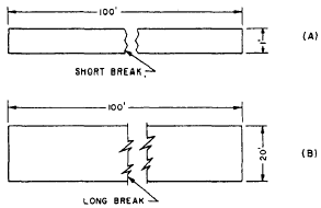 BREAK LINES The size of the graphic representation of an object is often reduced (usually for the purpose of economizing on paper space) by the use of a device called a break. Suppose, for example, you want to make a drawing of a rectangle 1 ft wide by 100 ft long to the scale of 1/12, or 1 in. = 1 ft. If you drew in the full length of the rectangle, you would need a sheet of paper 100 in. long. By using a break, you can reduce the length of the figure to a feasible length, as shown in figure 3-34.