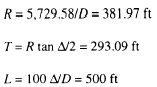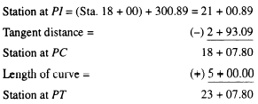 From these computed values, we can determine the stations of the PI, PC, and PT as follows: