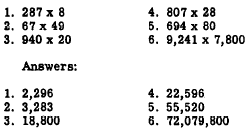 Placement of Decimal Points In any whole number in the decimal system, there is understood to be a terminating mark, called a decimal point, at the right-hand end of the number. Although the decimal point is seldom shown except in numbers involving decimal fractions (covered in chapter 5 of this course), its location must be known. The placement of the decimal point is automatically taken care of when the end Os are correctly placed. Practice problems. Multiply in each of the following problems: