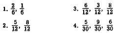 Practice problems. Change the fractions in each of the following groups to like fractions with least common denominators: