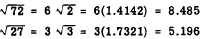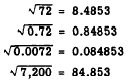 TABLES OF ROOTS The decimal values of square roots and cube roots of numbers with as many as 3 or 4 digits can be found from tables. The table in appendix I of this course gives the square roots and cube roots of numbers from 1 to 100. Most of the values given in such tables are approximate numbers which have been rounded off. For example the fourth column in appendix I shows thatThe following examples show the effect, as reflected in the square root, of shifting the location of the decimal point in the number whose square root we seek: