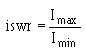 This ratio is useful because the instruments used to detect standing waves react to the square of the voltage. Since power is proportional to the square of the voltage, the ratio of the square of the maximum and minimum voltages is called the power standing-wave ratio. In a sense, the name is misleading because the power along a transmission line does not vary. Current Standing-Wave Ratio The ratio of maximum to minimum current along a transmission line is called CURRENT STANDING-WAVE RATIO (iswr). Therefore: