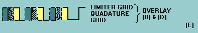 At the quadrature grid the voltage across C3 lags the current which produces it [view (C)]. The result is a series of pulses, shown in view (D), appearing on the quadrature grid at the center frequency, but lagging the limiter-grid voltage by 90 degrees. Because the quadrature grid has the same conduction and cutoff levels as the limiter grid, the resultant current waveform will be transformed into a square wave. Figure 3-18C. - Gated-beam detector waveforms.