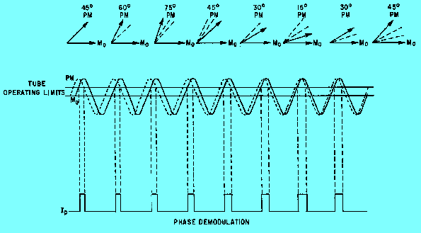 frequency as the phase of the carrier is shifted. Because of this incidental frequency shift, fm demodulators, such as the Foster-Seeley discriminator and the ratio detector, can also be used to demodulate phase-shift signals. ">
