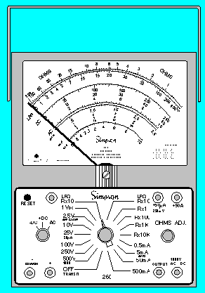 In the previous chapters, you have learned how to use some basic and miscellaneous measuring instruments to perform required maintenance and upkeep of electronic systems and components. You were also introduced to the construction and operation of basic meter movements in test equipment. This chapter will introduce you to some of the testing instruments commonly used in the Navy today. MULTIMETERS During troubleshooting, you will often be required to measure voltage, current, and resistance. Rather than using three or more separate meters for these measurements, you can use the MULTIMETER. The multimeter contains circuitry that allows it to be used as a voltmeter, an ammeter, or an ohmmeter. A multimeter is often called a VOLT-OHM-MILLIAMMETER (VOM). One of the greatest advantages of a VOM is that no external power source is required for its operation; therefore, no warm-up is necessary. Other advantages are its portability, versatility, and freedom from calibration errors caused by aging tubes, line voltage variations, and so forth. Q.1 What is one of the greatest advantages of a VOM? Two disadvantages are that (1) the VOM tends to "load" the circuit under test, and (2) the meter movement is easily damaged as a result of improper testing procedures. Never press down on or place any object on the glass face of any multimeter. This can disable the meter movement from operating properly or cause damage. MEASURING RESISTANCE, VOLTAGE, AND CURRENT WITH A NONELECTRONIC VOM In the discussion that follows, you will become familiar with the operation and use of the multimeter in measuring resistance, voltage, and current. The meter selected for this discussion is the Simpson 260 multimeter, as shown in figure 4-1. The Simpson 260 is a typical VOM used in the Navy today. Figure 4-1. - Simpson 260 Series 6XLP Volt-Ohm-Milliammeter (VOM) The multimeter has two selector switches. The switch on the lower left is the function switch, and the one in the lower center is the range switch. The function switch selects the type of current you will be measuring (+dc, -dc, or ac). The range switch is a 12-position switch that selects the range of ohmmeter, voltmeter, or milliammeter measurements you will make. The multimeter is equipped with a pair of test leads; red is the positive lead and black is the negative, or common, lead. Eight jacks are located on the lower part of the front panel. To prepare the meter for use, simply insert the test leads into the proper jacks to obtain the circuit and range desired for each application. In most applications, the black lead will be inserted into the jack marked at the lower left with a negative sign (-) or with the word COMMON. Measuring Resistance Before proceeding, you should be aware of the following important safety precaution that must be observed when using the ohmmeter function of a VOM: Never connect an ohmmeter to a "hot" (energized) circuit. Be sure that no power is applied and that all capacitors are discharged. Q.2 Before you connect a VOM in a circuit for an ohmmeter reading, in what condition