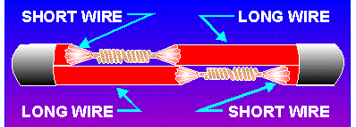 Staggering Splices Joining small multiconductor cables often presents a problem. Each conductor must be spliced and taped. If the splices are directly opposite each other, the overall size of the joint becomes large and bulky. A smoother and less bulky joint can be made by staggering the splices. Figure 2-6 shows how a two-conductor cable is joined to a similar size cable by using a Western Union splice and by staggering the splices. Care should be taken to ensure that a short wire from one side of the cable is spliced to a long wire, from the other side of the cable. The sharp ends are then clamped firmly down on the conductor. The figure shows a Western Union splice, but other types of splices work just as well. Figure 2-6. - Staggering splices. Rattail Joint A splice that is used in a junction box and for connecting branch circuits is the rattail joint (figure 2-7). Figure 2-7. - Rattail joint. Wiring that is installed in buildings is usually placed inside long lengths of steel or aluminum pipe called a conduit. Whenever branch or multiple circuits are needed, junction boxes are used to join the conduit. To create a rattail joint, first strip the insulation off the ends of the conductors to be joined. You then twist the wires to form the rattail effect. This type of splice will not stand much stress. |