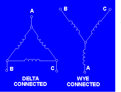 The three-phase alternator, as the name implies, has three single-phase windings spaced such that the voltage induced in any one phase is displaced by 120 from the other two. A schematic diagram of a three-phase stator showing all the coils becomes complex, and it is difficult to see what is actually happening. The simplified schematic of figure 3-8, view A, shows all the windings of each phase lumped together as one winding. The rotor is omitted for simplicity. The voltage waveforms generated across each phase are drawn on a graph, phase-displaced 120 from each other. The three-phase alternator as shown in this schematic is made up of three single-phase alternators whose generated voltages are out of phase by 120. The three phases are independent of each other. Figure 3-8. - Three-phase alternator connections. Rather than having six leads coming out of the three-phase alternator, the same leads from each phase may be connected together to form a wye (Y) connection, as shown in figure 3-8, view B. It is called a wye connection because, without the neutral, the windings appear as the letter Y, in this case sideways or upside down. The neutral connection is brought out to a terminal when a single-phase load must be supplied. Single-phase voltage is available from neutral to A, neutral to B, and neutral to C. In a three-phase, Y-connected alternator, the total voltage, or line voltage, across any two of the three line leads is the vector sum of the individual phase voltages. Each line voltage is 1.73 times one of the phase voltages. Because the windings form only one path for current flow between phases, the line and phase currents are the same (equal). A three-phase stator can also be connected so that the phases are connected end-to-end; it is now delta connected (fig. 3-8, view C). (Delta because it looks like the Greek letter delta, Δ.) In the delta connection, line voltages are equal to phase voltages, but each line current is equal to 1.73 times the phase current. Both the wye and the delta connections are used in alternators. The majority of all alternators in use in the Navy today are three-phase machines. They are much more efficient than either two-phase or single-phase alternators. Three-Phase Connections