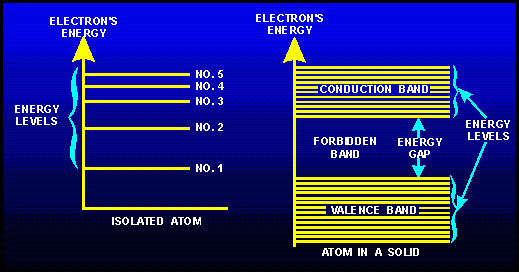 VALENCE is the ability of an atom to combine with other atoms. The valence of an atom is determined by the number of electrons in the atom's outermost shell. This shell is referred to as the VALENCE SHELL. The electrons in the outermost shell are called VALENCE ELECTRONS. IONIZATION is the process by which an atom loses or gains electrons. An atom that loses some of its electrons in the process becomes positively charged and is called a POSITIVE ION. An atom that has an excess number of electrons is negatively charged and is called a NEGATIVE ION. ENERGY BANDS are groups of energy levels that result from the close proximity of atoms in a solid. The three most important energy bands are the CONDUCTION BAND, FORBIDDEN BAND, and VALENCE BAND.