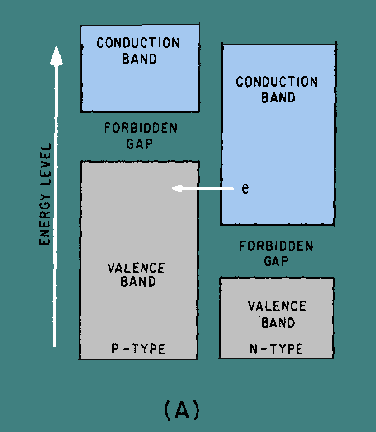 Figure 3-9, view A, is the energy diagram of a tunnel diode in which the forward bias has been increased even further. The energy bands no longer overlap and the diode operates in the same manner as a normal PN junction, as shown by the portion of the curve in view (B) from point 3 to point 4. |