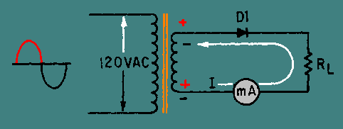The RECTIFIER is the section of the power supply that contains the secondary windings of the power transformer and the rectifier circuit. The rectifier uses the ability of a diode to conduct during one half cycle of ac to convert ac to dc. HALF-WAVE RECTIFIERS give an output on only one half cycle of the input ac. For this reason, the pulses of dc are separated by a period of one half cycle of zero potential voltage.