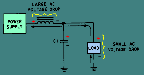 The CURRENT LIMITER is a short-circuit protection device that automatically limits the current to a safe value. This is done when the current-limiting transistor senses an increase in load current. At this time the current-limiting transistor decreases the voltage on the base of the pass transistor in the regulator, causing a decrease in its conduction. Therefore, current cannot rise above a safe value. TROUBLESHOOTING is a method of detecting and repairing problems in electronic equipment. Two methods commonly used are the VISUAL CHECK and SIGNAL TRACING. The visual check allows the technician to make a quick check of component problems, such as shorts, discolored or leaky transformers, loose or broken connections, damaged resistors or capacitors, smoking parts, or sparking. The signal tracing method is used when the technician cannot readily see the problem and needs to use test equipment. Component failure is also important in troubleshooting. In transformers and chokes, a winding can open, or two or more windings can short, either to themselves or to the case that is usually grounded. In a capacitor only two things can occur: either it can short and act as a resistor, or it can open, removing it from the circuit. A resistor can open, increase in value, or decrease in value. |