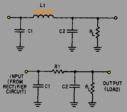 PI-TYPE FILTERS use both capacitive and inductive filters connected in a pi-type configuration. By combining filtering devices, the ability of the pi filter to remove ripple voltage is superior to that of either the capacitance or inductance filter.