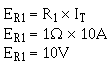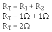 In view (A), V1 (the left-hand battery) supplies +10 volts to the circuit while V2 (the right-hand battery) supplies -10 volts to the circuit. The total difference in potential in the circuit is 20 volts. The total resistance of the circuit can be calculated: