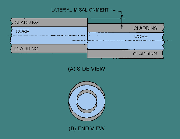 SUMMARY Now that you have completed this chapter, let's review some of the new terms, concepts, and ideas you have learned. You should have a thorough understanding of these principles before moving on to chapter 5. FIBER OPTIC CONNECTIONS transfer optical power from one component to another. Fiber optic connections also permit fiber optic systems to be more than just a point-to-point data link. A FIBER OPTIC SPLICE is a permanent joint between two fibers or two groups of fibers. FIBER OPTIC CONNECTORS permit easy coupling and uncoupling of optical fibers. FIBER OPTIC COUPLERS distribute or combine optical signals between fibers. POOR FIBER END PREPARATION and <emphasis type="b.GIF">POOR FIBER ALIGNMENT</emphasis> are the main causes of coupling loss. RADIANCE is the amount of optical power emitted by a unit area of emitting surface per unit time in a specified direction. An optical source's radiance, or brightness, is a measure of its optical power launching capability. FIBER-TO-FIBER COUPLING LOSS is affected by intrinsic and extrinsic coupling losses. INTRINSIC COUPLING LOSSES are caused by inherent fiber characteristics. EXTRINSIC COUPLING LOSSES are caused by jointing techniques. A FIBER PIGTAIL is a short length of optical fiber (usually 1 meter or less) permanently fixed to a fiber optic component, such as an optical source or detector. FRESNEL REFLECTION occurs twice in a fiber-to-fiber connection. A portion of the optical power is reflected when the light first exits the source fiber. Light is then reflected as the optical signal enters the receiving fiber. INDEX MATCHING GEL eliminates or reduces the step change in the refractive index at the fiber interface, reducing Fresnel reflection. POOR FIBER ALIGNMENT is a main source of coupling loss in fiber-to-fiber connections. The three basic coupling errors that occur during fiber alignment are fiber separation (longitudinal misalignment), lateral misalignment, and angular misalignment. In FIBER SEPARATION a small gap remains between fiber-end faces after completing the fiber connection. LATERAL, or AXIAL, MISALIGNMENT is when the axes of the two fibers are offset in a perpendicular direction. ANGULAR MISALIGNMENT is when the axes of the two fibers are no longer parallel.