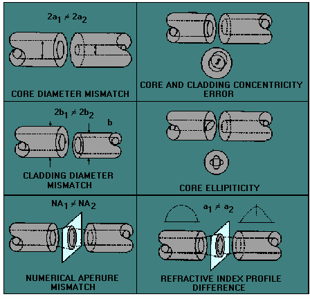POLISHING the fiber ends removes most surface imperfections introduced by the fiber cleaving or cutting process. Fiber polishing involves a step-down approach. The first step is to give the surface of the fiber end a rough polish. The next step involves giving the surface of the fiber end a fine polish. FIBER MISMATCHES are a source of intrinsic coupling loss. Types of fiber mismatches include fiber geometry mismatches, NA mismatch, and refractive index profile difference. FIBER GEOMETRY MISMATCHES include core diameter, cladding diameter, core ellipticity, and core-cladding concentricity differences.