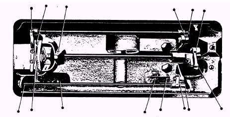 Adjusting the Feed Dog The height at which the feed dog should be set depends on the weight and number of plies of the material being sewn. If the feed dog is set too low, the material does not feed through the machine; if it is set too high, it may cut or fray the material. The recommended height of the feed dog for sewing lightweight canopy material is slightly less than one tooth above the throat plate. If you are sewing heavier material, raise the feed dog to a height that ensures positive feeding of the material. After you have decided on the correct height for the project you are working on, adjust the feed dog accordingly, by loosening and then tightening the screw, as shown in figure 9-7. You must remember that each time the height of the feed dog is changed, the feeding mechanism may be out of time. For this reason, set the feed dog first, and then make the necessary adjustment on the feeding mechanism. Since most of your canopy repairs involve material of approximately the same weight, one-time adjustment of the feed dog is usually sufficient. Repeated changing of its height is not necessary. |