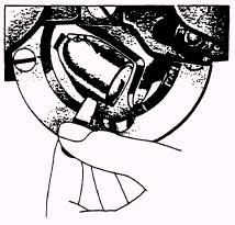 Turn the balance wheel forward to bring the needle bar and thread take-up lever to its lowest position. With the aid of the shuttle opening tool or a small screwdriver, insert the blade end in the slot in the spring latch beneath the shuttle cylinder (fig. 9-20). Press the latch away from the cylinder and it will swing out. The bobbin will then slide out of the shuttle cylinder. Winding the Bobbin Place the bobbin on the bobbin winder spindle and push it up closely against the shoulder. The small pin in the shoulder must enter the slot in the bobbin. Pass the thread from the thread stand through the hole in the left side of the bobbin from the inside. Push the bobbin winder pulley up against the balance wheel, and place the bobbin winder