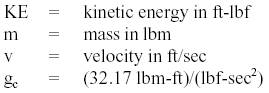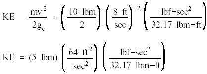 Example: What is the kinetic energy of a 10 lbm object that has a velocity of 8 ft/sec?