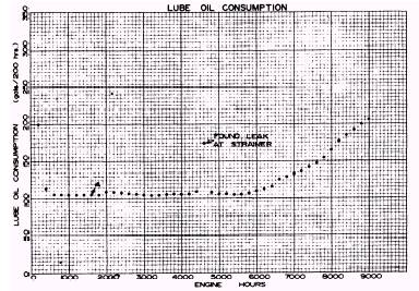 hours, etc.). The first point for lube oil consumption occurs at 200 engine