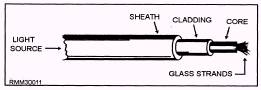 Figure 1-11.\Fiber optic cable. l Monomode\ Single fiber cable l Multimode\ Several fibers within a cable * Graded index\ A variation of multimode Some of the major advantages of fiber optics over wire media include speed, size, weight, longevity, and resistance to tapping without being noticed. Since it carries no electrical current, it is immune to electrical interference of any kind, and there is no worry of it being a shock hazard. One big disadvantage of fiber optic is the tighter restrictions on how much the cable can be bent. Other disadvantages include higher cost, and the inability to add on new workstations while other stations are active. Although it is relatively easy to splice the fiber optic cable and add new stations, the network or a portion of the network must be down while preparing the splice. On the other hand, if your activity has serious interference problems, or has a need for absolute network security, or the need to send signals several miles, then fiber optics might be the only solution. Cable Selection About now, you may be asking yourself, why all the fuss over transmission speeds? Why not just simply choose the cheapest transmission medium available and use it? It may not be the ideal situation, but it would get the job done, right? This is true; and with that in mind, we ask you this question. Would you put regular unleaded gasoline in your brand new car that happens to have a high-performance engine? The engine may not run as well as you would like, but it would get the job done, right? The same is true of transmission speeds and the different levels of speed within a computer system. To put it another way, the speed of transmission is very much related to the type of transmission medium used between stations in a network. Most computer processing units (CPUs) are able to execute instructions and basic decision-making steps at a rate of several million instructions per second. Data can be transferred between the computer's memory and the cpu at these same rates of speed. The ideal network could keep up with the high speed of the cpu and be able to transfer data between the stations of the network at rates close to the rates that data is moved around within the cpu and memory. However, this is just not possible with a telephone line linked system, which is limited in the range of frequencies it can carry. When high-frequency signals are carried by wire such as twisted-pair, all sorts of electrical effects come into play. It's not sufficient to simply link computer systems with common wire. Considerable thought must be given to the electrical characteristics of the connection. The cable selection must be made during the design phase of the network to ensure that the decision is not left to be made during the installation of the network. |