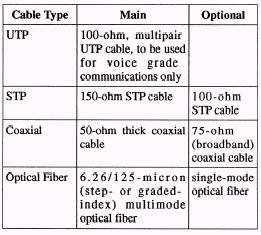 NETWORK BACKBONES Backbone cable refers to the cable that forms the main trunk, or backbone, of a network. Individual nodes and other devices may be connected to this cable using special adapters and a separate stretch of cable. Backbone cable is defined by the Electronics Industries Association/Telecommunications Industry Association-568 (EIA/TIA-568) committee as any "behind the scenes" cable; that is, cable running behind walls, in shafts, or under the ground. The EIA/TIA-568 recognizes four types of backbone cable; they are listed in table 2-3. The use of a backbone network to tie together a number of small access networks offers several advantages over the construction of a single large LAN. The various LANs connected to the backbone are able to operate in parallel, providing greater processing efficiency. The multiple-network approach is also more reliable, since each individual LAN can continue operating if one of the access networks, or even the backbone, fails. The backbone network must also be highly reliable, since the greater distances covered may make it difficult to locate and repair faults. The LANs that connect to the backbone must be flexible and low-cost in terms of installation and user connection. To connect a node directly to a backbone, you would use a drop cable for the connection. Nodes are normally connected to the backbone indirectly through a concentrator or a hub rather than with a drop cable. The elements needed to connect a node to a network include the following: e Cable: twisted-pair, coaxial, or fiber-optic l Wiring centers: hubs or concentrators l Intranetwork links: connectors, repeaters, and so on l Internetwork links: bridges, routers, gateways, and so on The cable provides a transmission medium, as well as the physical link between the nodes on the network. Connectors and repeaters attach cable sections to each other; connectors and transceivers attach NICs to a cable and, thereby, to the network. Transceivers enable different types of cable to be attached to each other. Terminators absorb a transmission at the end of a network, preventing the signal from traveling back in the other direction on the network. The types of intranetwork links allowed in the network depend on the type of cable used and on the network topology used. Wiring centers serve as a focal point for network elements, and may influence the logical arrangement of nodes on the network. Internetwork links may be bridges, routers, gateways, and soon. Such components serve to connect networks to each other. The type of internetwork link depends on whether the two networks are the same or not, and the amount of translation that is needed. NETWORK SERVER A server is the central computer in a network, and is responsible for managing the network. The server provides some type of network service. It may be hardware, such as a file server, or software, such as network level protocol for a transport level client. The server provides its service to other workstations on the network or to other processes. In a server-based network, the most important hardware server is the fileserver, which controls access to the files and data stored on one or more hard disks. Table 2-3.\Types of backbone cable.
