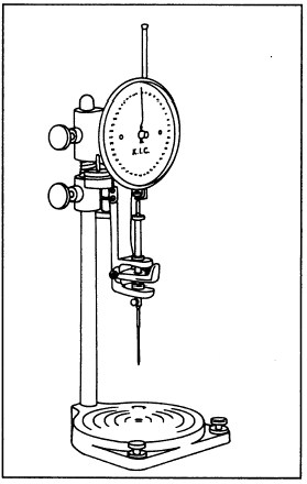 Figure 13-33.-Asphalt penetrometer. durable it is. Ideal density is obtained by filling the voids between the largest particles with smaller particles, and soon, right down through the whole range of sizes from coarsest to finest.Common practice divides the aggregates used for bituminous paving into coarse aggregate (retained on the No. 10 sieve), fine aggregate (retained on the No. 200 sieve), and mineral filler. Usually 65 percent or more of the mineral filler will pass the No. 200 sieve. The distribution of the sizes determines how many voids will remain and aids in determining how much bitumen will be needed.The EA must be able to perform a number of tests on aggregates to determine their acceptability y for bituminous construction. One test is the grain size distribution test that is done by sieve analysis, using the same procedure as described for soil in the EA3 TRAMAN. Tests for mineral dust and specific gravity are also needed. Instructions for conducting both these tests are contained in the following paragraphs.