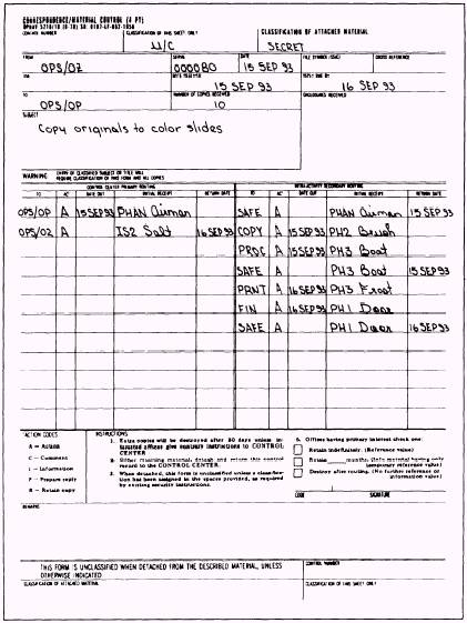 Classified information or material must be stored under conditions that prevent unauthorized persons from gaining access to it. The security requirements must allow work to be accomplished while providing adequate security. In the Navy, the commanding officer is directly responsible for safeguarding all classified information within his command. He is also responsible to ensure that classified material is stored properly when not actually in use. Storage Whenever classified material is not under the personal control and observation of an authorized person, it must be guarded or stored in a locked security container. Top Secret material is stored in a safe or safe type of steel file container having a three-position combination lock as approved by the General Services Administration (GSA) or a class A vault that meets the standards established by the Director of Naval Intelligence. An alarm-protected area may be used to protect Top Secret material when the responsible local official decides that an alarm system provides protection equal to, or better than, the safe, steel file, or vault. The alarm-protected area provides a physical barrier that prevents removal of the material and prevents the material from being viewed by unauthorized personnel and compromised. Secret and Confidential material may be stored in the same manner authorized for Top Secret or, in a class B vault, a vault type of room, or a secure storage room that has been approved according to the standards prescribed by the Director of Naval Intelligence. Valuables, such as money, jewels, precious metals, narcotics, and so forth, should not be held in safes used to store classified materials because they increase the risk of theft. Only classified materials are to be placed in containers designated for storage of classified material. Container Designations and Combinations Containers used for the storage of classified material are assigned a number or symbol for identification purposes. The identifying numbers or symbols are located in an obvious location on the outside of the container. Each container must also meet the security requirements for the highest classification of material stored in the container. However, this designation is not marked externally on the container. Records of combinations are sealed in envelopes (OPNAV 5511/2) and kept by the security manager, duty officer, communications officer, or other person(s) designated by the commanding officer. Combinations for containers with noncryptographic material will be changed under any of the following conditions: When a safe is first placed into use Annually When the combination or record of combinations has been compromised or a security container is discovered unlocked and unattended Whenever an individual knowing the combination is transferred or discharged, or when the security clearance of an individual knowing the combination is reduced, suspended, or revoked When you are selecting new combination numbers, multiples of 5, simple ascending or descending numerical series, and personal data (such as birthdays and serial numbers) must not be used. The same combination cannot be used for more than one container. Combinations to security containers are changed only by persons that are cleared for the highest level of classified material stored in the container. When a security container is taken out of service, built-in combination locks must be reset to the standard combination 50-25-50. Combination padlocks must be reset to 10-20-30.
