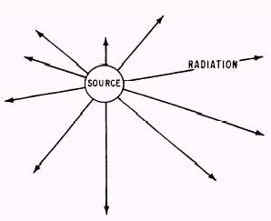 Figure 1-4. Light emitted from a source. Once light is produced (emitted), it is no longer dependent on its source, and only its speed is affected by the many mediums through which it can travel. Another example of the independence of light is that when light travels from air into a denser but transparent medium, such as glass, its speed is reduced. But when it leaves the glass, it returns to its original speed. This changing speed is important in refraction, a behavior of light that allows lenses to form images. Unless light is reflected or focused, it travels or radiates in all directions from the source. As light travels from the source, its energy of light spreads out. The greater the distance it travels, the more it spreads out (fig. 1-4). Therefore, the amount of light reaching a given area at a given distance is less than that reaching the same area closer to the source. In other words, the intensity of illumination on a surface varies when the distance between the light source and the surface, or subject, is changed. This becomes important when exposing film with artificial light. COLOR OF LIGHT Look at a bright, red apple on a dark, green tree. It is hard to believe that color is not an inherent property of these objects; in fact color is not even inherent to light. What you are seeing is a visual perception stimulated by light. The apple and tree are only visible because they reflect light from the sun, and the apple appears red and the tree appears green because they reflect certain wavelengths of light more than others. In this case, these particular wavelengths are seen by the human eye as red and green. When we see a color, we are simply seeing light of a particular wavelength. When a beam of light has a relatively even mixture of light of all visible wavelengths, it appears as white light. When this beam of white light is passed through a prism, its different wavelengths are spread apart and form a visible spectrum. This visible spectrum is seen as a band of colors, such as violet, blue, blue-green, green, yellow, and red (fig. 1-5). |