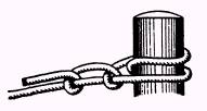 Figure 10-44.-Round knot and two half hitches. on the various types of personnel, cargo, and deceleration parachutes. Normally, three half hitches in a series are used for the safety tie. |