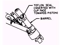 Figure 2-8.-Inspecting gasket seal. 9. Check the sealing compound on the aneroid screw, shown in figure 2-7. The seal must be intact and undisturbed. Cracks due to normal aging of seal material are acceptable. 10. Inspect the Teflon seal. Be sure that the cup side of the seal is facing the piston (fig. 2-8). |