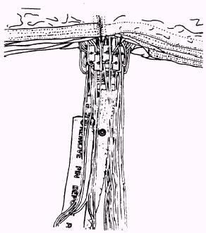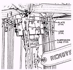 Figure 3-9.-Complete set of suspension lines. the external parachute is connected to the cord that links the internal pilot chute to the main canopy vent lines. A special device is used to jettison the external chute at high speeds. This device is the override disconnect assembly, shown
