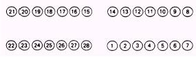 Figure 3-13.-Arrangement of suspension lines on connectorlinks. . The suspension line must be arranged on the connector links, as shown in figure 3-13, and on the spreader gun, as shown in figure 3-14. The spreader guns must be turned so that suspension lines 15 and 14 face up. The suspension lines must pass through corresponding numbered slots in the spreading gun slugs. Ensure that the loops attached to the odd numbered suspension lines pass through the slots in the odd number of slugs. . Suspension lines must run free from the skirt hem, through the corresponding numbered slot in the spreading gun slugs, and to the connector links without any dips or twists. STRAIGHTENING CANOPY GORES WITH SPREADER GUN INSTALLED It would be impossible for you to whip and fold a canopy with a spreading gun installed. For this reason you will have to straighten the gores instead of whipping and folding. Always ensure the safety pin is installed in the spreading gun and the spreading gun firing lanyard is detached from the connector link. 1. The helper should place a shot bag on the helper's side of the skirt hem. 2. The packer rotates all gores on the packer's