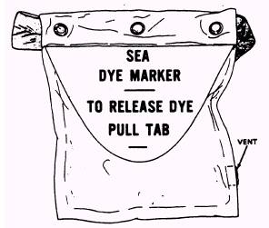 Figure 5-1.-Dye marker. area is visible at an approximate distance of 10 miles from an altitude of 3,000 feet. If rapid dispersion of the dye is desired, agitate the packet of dye vigorously in the water. |