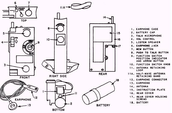 AN/PRC-90 RADIO SET The AN/PRC-90 (fig. 5-8) radio set is a dual channel, battery-powered, personal emergency rescue device used principally for two-day voice or MCW (modulated continuous wave, which is used to send Morse code signals) communications between a downed aircrewman and a rescue aircraft. The radio transmits either voice. tone (MCW), or swept-frequency homing beacon