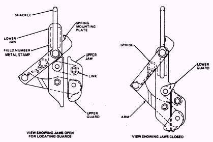 CABLE GRIP The cable grip (which opens and closes on the cable) and a shackle enable the cable grip to be attached to the crewman's safety belt to take the weight off the hoist assembly during a hoist 239.411