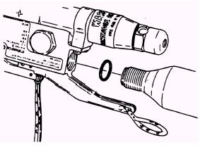 Figure 6-24.-Inserting new O-ring and CO weight. Discard and replace the cylinder if its scale weight is 2 grams less than its stamped minimum weight. By using the cylinder thread chaser die, figure 6-23, you turn the thread chaser to the full extent of the threads on the CO2 cylinder to cut free any excessive cadmium plating covering the threads. Insert new O-ring and turn the CO2 cylinder into inflator body as far as hand twisting permits. See figure 6-24. Battery Replacement, LPU-23/P (Series) and LPU-24/P (Series) To replace batteries, proceed as follows: Remove the sensor plug cap with a standard box wrench. WARNING BATTERIES MAY EXPLODE IF RE-CHARGED OR IF THEY ARE DIS-POSED OF IN A FIRE. Remove the old batteries and discard them. CAUTION NEVER REPLACE ONE BATTERY; ALWAYS REPLACE THE PAIR. Remember to record the date of manufacture and the date of installation of new batteries on the Aviation Crew Systems History Card. NOTE: Batteries have a total life of 2 years from the date of manufacture. Do not install batteries if their total life expires prior to the next scheduled calendar inspection. Install batteries in accordance with figure 6-20. WARNING ENSURE THAT THE SENSOR PLUG CAP IS TORQUED TO THE CORRECT VALUE. On FLU-8A/P only, torque the sensor plug cap to 5 in-lb using 17/32-inch socket and torque wrench. |