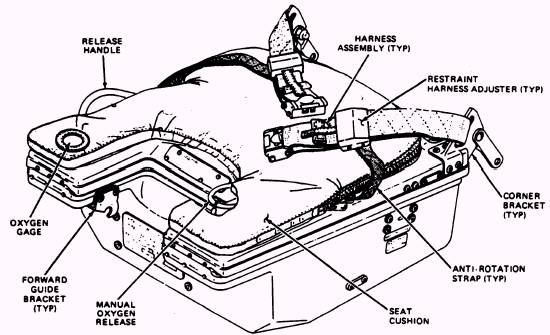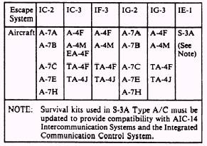 CHAPTER 7 SEAT SURVIVAL KIT Learning Objective: Upon completion of this chapter, you will be able to identify, inspect, and maintain the RSSK-8 seat survival kit. The ejection seat survival kit is designed for use in ejection seat equipped aircraft only. Ejection seat survival kits are designated Rigid Seat Survival Kit (RSSKs) -1, -1A, -3, -6B2, -7, -8, and -9; Survival Kit Unit (SKUs) -2A, -3A, and 4A; and Semirigid Restraint and Life Support Assembly (IULSA) -1. The RSSK-8 is discussed in this chapter. RSSK-8 SERIES SEAT SURVIVAL KIT The Rigid Seat Survival Kit-8 Series (RSSK-8 series) is designed for use with Douglas ESCAPAC ejection seats and functions as a seat cushion for the aircrewman as well as a container for an emergency oxygen system, life raft and survival equipment (shown in figures 7-1 and 7-2). There are three manufacturers of these kits- Rocket Jet Engineering Corp., Scott Aviation Corp., and East-West Industries. The illustrations in this chapter show the latest configuration of the RSSK-8 manufactured by Scott Aviation Corporation. The RSSK-8 has a bonded fiber glass body and an extruded metal lip interconnecting the upper and lower containers. The upper container houses