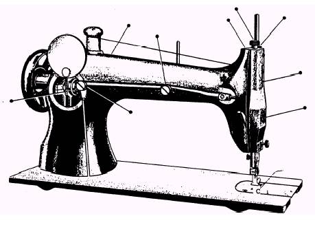 OSCILLATING TYPE SEWING MACHINES Two of the most commonly used oscillating sewing machines are the 31-15 and 7-33, both of which are discussed in this chapter. SINGER SEWING MACHINE 31-15 When starting out as a PR, the 31-15 sewing machine will probably be the one you'll like to use. This machine is smaller and lighter than most of the other machines used in the parachute loft. The manufacturer calls the 31-15 a tailoring machine. It is used to sew and repair clothing, uniforms, shirts, flying clothing, jackets, and lightweight protective covers. The 31-15 is an oscillating sewing machine that has a recommended speed of 2,200 stitches per minute and makes a lockstitch. It is very good for sewing nylon cloth, and can be used for sewing lightweight canvas up to 8 ounces. The number of stitches can be regulated from 7 to 32 stitches per inch. When the 31-15 machine is in operation, the balance wheel turns over toward the operator. When hand-turning the balance wheel, always rotate it in this direction. The components of the Singer Sewing Machine 31-15 are shown in figure 9-2. The following practices and procedures help to ensure safe and smooth operation of the sewing machine: 1. The balance wheel must always turn toward the operator. 2. Do not run the machine with the presser foot resting on the feed dog without material being under the presser foot. 3. Do not run the machine when both bobbin case and needle are threaded unless there is material under the presser foot. 4. Do not try to help the machine by pulling the material. You may bend or break the needle. If properly adjusted, the machine feeds the work without assistance. 5. The slide over the bobbin case should be kept closed when the machine is in operation. 6. Keep your head away from the thread takeup lever and needle bar at the top of the sewing machine face. 7. When running the machine, do not take your eyes away from the needle and presser foot. 8. Keep your fingers from under the needle. 9. When running the machine, keep your fingers away from the belt and pulley areas. 10. Never attempt threading the needle when the machine is turned on. Lubrication To ensure easy operation and to prevent unnecessary wear of the moving parts, all sewing machines need oiling. When a machine is in constant use, it should be oiled twice a day. Anew machine should be oiled more frequently when in constant use. Use only one drop of oil at each oiling point. A 10W mineral oil is recommended. Oiling points for the 31-15 machine are shown in figures 9-3, 9-4, and 9-5. Oil should be applied regularly to the shuttle bearing in the shuttle race. Occasionally, remove the faceplate and apply oil to the bearings and points that are uncovered. Timing the 31-15 There are two distinct timing operations for the 31-15 machine. One operation times the needle with the shuttle; the other timing operation times the feed dog with the needle. Both the needle with the shuttle and the feed dog with the needle must