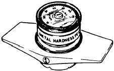 THE ERNST PORTABLE HARDNESS TESTER HAS A DIAMOND-TIPPED PENETRATOR AND READS IN ROCKWELL OR BRINELL SCALES. NOTE : MATERIAL MUST BE SOLIDLY SUPPORTED FROM BEHIND. PRESS DOWN WITH A STEADY, EVEN FORCE.Figure 1-31.-Ernst portable hardness tester. |