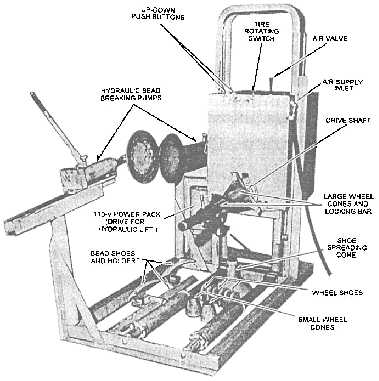 takeoff speeds. Carrier operations place extra demands on the tire maintenance. In many cases tire failures are attributed to material failures and/or manufacturing defects when actually improper maintenance was the underlying cause. Poor inspection, improper buildup, operation of tires in an underinflated or overinflated condition are common causes for tire failure. Strict adherence to proper inspection procedures and maintenance instructions is mandatory. This will ensure that sound tires with minor discrepancies will not be removed prematurely, unsafe tires will be replaced before flight, and worn tires will be removed at the proper time to permit rebuilding.During the mounting, dismounting, and inflating of tires, safety is paramount. Compressed air and nitrogen present a safety hazard if the operator is not aware of the proper operation of the inflation equipment and the characteristics of the inflation medium. It is also very important to know the wheel type and be familiar with the manufacturers recommended procedure before you attempt to dismount a tire. For specific precautions concerning a particular installation, you should always consult the applicable MIM. |