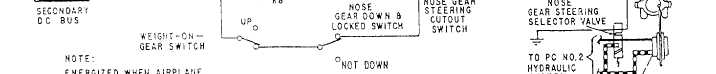 Figure 12-15.-Nose gear steering system diagram. 6. Simulate "weight on wheels by depressing the switch in the left wheel well. Engage the nose gear steering and partially depress the right rudder pedal. Check to see that the nose gear makes a partial right turn and stops.7. Return the rudder pedals to neutral, and check to see that the nose gear returns to within 0.15 inch of the center. 8. Release the steering switch, and check to see that the nose gear stays in the center position.9. Retract the arresting gear, and repeat steps 6 and 7. Move the rudder pedal partially left.10. Operate the steering switch, and slowly press the right rudder pedal for a full right turn. The triangular mark on the top front of the housing must be within 0.2 inch of the right 61-degree mark on the steering cap. Repeat this process with the left rudder pedal.11. Manually turn the nose gear left, and then right to 0.3 inch beyond the 61-degree index mark on the steering cap. With the steering switch actuated, the system must be inoperative (beyond steering limits).12. With the rudder pedals in the clean con-figuration, move the nose gear left. Then move the nose gear right to within 0.4 inch of the 61-degree limit, and operate the steering switch. The gear should return to neutral.13. Release the weight-on-wheels switch and check to see that the nose gear steering disengages.14. Release the steering switch, and disconnect external electrical and hydraulic power.15. Lower the aircraft and remove jacks. 16. Close access doors and check cockpit and nose gear well for cleanliness and loose gear.Troubleshooting You can accomplish troubleshooting by studying system diagrams and related troubleshooting analysis charts. Malfunctions shown in the troubleshooting tables are in numerical order. The numbers relate to corresponding number(s) following the steps of the operational check. If trouble symptoms are known, you can accomplish troubleshooting without reference to the operational check. However, following system repair, perform an operational check to verify proper system operation. |