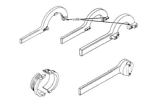 Figure 12-21.-Landing gear shock strut tools. nut and reinflating the strut, the strut must be dis-assembled and the packings replaced.The tools shown in figure 12-21 are typical of the tools used during disassembly and assembly of landing gear shock struts. Normally, each tool is designed for, and should be used only on, one type of installation. When using wrenches, you must take care to maintain the lugs of the wrenches in their respective positions.Slippage of the wrench, when under torquing conditions, may cause damage to aircraft parts, the tool, or even injury to personnel. NEVER place extension handles of any type on these tools to increase the applied force.These tools, like other special tools, should be kept where they will not be subjected to rough handling, which could cause mushroomed or deformed surfaces, making them useless for aircraft repair. Shock strut disassembly and replacement of packings is a requirement for advancement to first class; therefore, it is not covered in this training manual. |