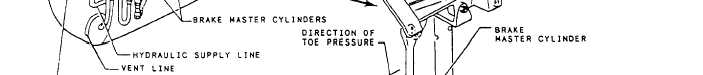 SYSTEM In general, the independent-type brake system is used on small aircraft. This type of brake system is termed independent because it has its own reservoir and is entirely independent of the aircrafts main hydraulic system.The independent-type brake system is powered by master cylinders similar to those used in the conventional automobile brake system. However, there is one major differencethe aircraft brake system has two master cylinders while the automobile system has only one.An installation diagram of a typical independent-type broke system is shown in figure 12-22. The system is composed of a reservoir, two master cylinders, and mechanical linkage, which connects each master cylinder with its corresponding brake pedal, connecting fluid lines, and a brake assembly in each main landing gear wheel.Each master cylinder is actuated by toe pressure on its related pedal The master cylinder builds up pressure by the movement of a piston inside a sealed fluid-filled cylinder. The resulting hydraulic pressure is transmitted
