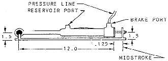 Repair and Replacement Polish minor nicks and scratches on metal parts with crocus cloth (Federal Specification P-C-458C for steel parts and P-C-451B for aluminum parts). During polishing, make sure that all dimensions are maintained within the specified limits and that seating and sealing surfaces are not damaged.Repair damage to anodized finishes on aluminum parts by applying a protective chemical film per Specification MIL-C-81706, class 1A, Form III.WARNING Chemical film materials are strongly oxidizing and are a fire hazard when in contact with organic materials such as paint thinners. Do not store or mix surface treatment materials in containers previously containing flammable products. Rags contaminated with chemical film material should be thoroughly rinsed and disposed of as soon as practical. When you replace a suspension bearing, stake the new bearing at the original stake points on both sides of the body by using a 3/16-inch-diameter ball in the staking tool. Verify the security of the bearing, and inspect the area around the staking indentations for possible fractures. Many parts for the repair of the Gladden master brake cylinder are provided in cure-date and overhaul kits. Replace all other worn or damaged parts that cannot be reworked to meet inspection requirements. Detail parts not provided in the kit maybe available from bulk stock. Lubrication Apply a light coat of hydraulic fluid to all sealing devices to aid in reassembly. The recommended lubricant for the suspension rod end bearing is grease, Specification MIL-G-23827. Reassembly Reassemble all interred parts in reverse order of disassembly by using an arbor press, or equivalent, and an AN350-4 nut to aid in assembly and to eliminate the possibility of personnel injury because of preload of springs. Testing The test equipment required includes a conventional hydraulic test bench capable of delivering fluid to 4,500-psi pressure at room temperature, plus the equipment illustrated in figures 12-43 and 12-44. The nominal extended length of the unit from the center of the end bearing to the end of the actuating rod is 15.31 inches. To proof test the inlet chamber and perform a leakage test, first apply 5 psi, and then 200 psi at the reservoir port with the brake port plugged. There
