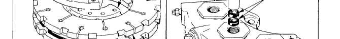 4. Remove the brake linings from the pistons, the brake housing, and the disc guide. 5. Clean the brake assembly components with low-pressure compressed air. Wash all metal parts in P-D-680 cleaning solvent. Dry with compressed air. 6. Check the release units for damage, nicks, and gouges. If damaged, replace the complete release unit. 7. Check the brake housing for cracks and cylinder walls for nicks or other visible damage. Damage will necessitate turning in the complete brake assembly to supply for disposition. 8. Install new linings in the housing cavities and rivet on the disc guide lining. Friction fit will hold the linings in the housing cavities. Do NOT use cement. 9. Install new linings in the piston cavities using brake lining adhesive specified for such use (for example, Pliogrip No. 3). 10. Install the brake disc into the brake housing. 11. Dip brake release unit packings from the cure-date kit into the hydraulic fluid and install on the brake release units. 12. Coat the piston of the release unit with a light coating of hydraulic fluid and install in the housing. Tighten the cylinder heads against the housing as specified in the MIM or the 03 manual. 13. Reinstall the inlet plug, bushing, and bleeder adapter into the housing. Use new packings that have been dipped in hydraulic fluid. 14. Lockwire the cylinder heads, bleed the brake, and test the brake for leakage and proper operation. Test pressure for this brake assembly is 1,100 psi. Hold the pressure for 2 minutes and check the assembly for leaks. Release and reapply the pressure 10 times, and check for proper brake operation and release of the discs. Allow the brake to stand 2 minutes with pressure relieved to check for static fluid leakage. On dual disc brakes, as well as some single disc brakes, the linings may be replaced without disturbing the brake hydraulic system. See figure 12-51. In this example, the shock strut is raised with a wheel jack until the wheel is clear of the ground. The wheel is removed, and the four internal wrenching bolts that attach the brake housing to the backplate are removed. The two setscrews located at each side of the brake housing are unscrewed enough to allow removal of the seven axle flange attaching bolts. Make certain the brake assembly is supported before you remove the bolts, or damage to the brake hose could result. Remove the brake linings from the pistons, center carrier, backplate, and disc guide. Riveted linings must be drilled. Snap-on or friction-fit linings can be easily pried off with a common screwdriver. Remove dirt and other foreign particles from the brake assembly components by the use of low-pressure compressed air. Wear safety eye protection during this operation. Clean the external surfaces of the brake parts with a cloth dampened with P-D-680 cleaning solvent. Replace any brake lining attaching buttons that are damaged. The housing, backplate, center carrier, and all bolts should be inspected for damage, cracks, or leakage, as applicable. lf the brake has hydraulic leakage or if the housing, backplate, or center carrier is damaged or cracked, the complete brake assembly should be replaced and turned in to supply for repair at the next higher level of maintenance. Inspect the disc for minimum thickness, maximum width of the keyways, and warping. Check the disc for warpage by using a straightedge across the face of the disc. Instructions for straightening a warped disc can be found in the applicable 03 manual. Replace a brake disc that is worn excessively. When a brake disc keyway is worn excessively or elongated, inspect the brake disc drive keys within the wheel assembly for damage and security. Replace the drive keys or the wheel if the damage exceeds the limitations specified in the applicable MIM. The new linings are installed in the brake pistons, the center carrier, and the backplate. The disc guide lining is riveted to the disc guide. The pistons are pushed back into the piston housing until a maximum of 1/8 inch of lining is protruding beyond the housing. Assemble the brake on the axle flange, and torque all attaching bolts as well as the four internal wrenching bolts to the specifications provided in the MIM. The fore and aft axle attaching nuts on the brake housing must have their flat surface toward the setscrew on the final torque. The setscrews are tightened against the flat surfaces to safety the nuts. Secure the four internal wrenching bolts with lockwire. The wheel is installed and the shock strut lowered. Perform an operational check to verify proper operation. Specified steps throughout the lining and disc replacement procedures and the final security of all attachments require quality assurance verification as indicated in the MIM.