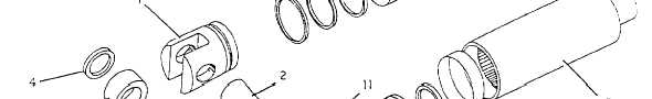 1. Cap Figure 12-57.Liquid spring shock assembly. on the slight compressibility of liquids. Figure 12-57 illustrates the disassembled spring assembly. Most of the internal parts are classified as nonrepairable, and damage will require replacement of the parts at the depot level of maintenance. The spring assembly contains 19 cubic centimeters of oil, MIL-S-21568. The oil is confined within the piston cylinder assembly, and any side movement of the arresting hook shank must be against the compressibility of the oil. The maximum travel or compressibility of the overall liquid spring assembly is 0.68 inch. The operating pressure within the assembly, when bottomed out, will be as high as 20,000 psi. In the static condition, the oil trapped within the spring assembly is under a return preload pressure of 350 pounds, which is created by the reassembly of the close tolerance parts that confine the liquid. The tolerances of parts within the liquid spring and the necessity to subject certain parts to approximately 110F for varying lengths of time during the disassembly and assembly process make it impractical for it to be overhauled at the lower levels of mainte-nance. |