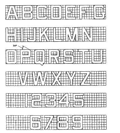 Figure 14-31 .-Forms of letters and numerals. The width of all letters and numbers is measured across the greatest distance from the outermost points of the letters or numbers. The width of the letters and numbers is calculated according to a percentage of the height by the number of blocks the figure represents. In other words, to obtain the percentage of the height, divide the width of the figure by the height.Examples: 1. The letter N is 6 blocks high, as are all the figures, and 4.5 blocks wide; therefore, the width of the letter should be 75 percent of the height (4.5/6 = 75%).2. The letter A is 5.5 blocks wide, therefore, the width should be 92 percent of the height (5.5/6 = 92%).3. The letter W is 6.5 wide; therefore, the width should be 108 percent of the height (6.5/6 = 108%).The sides of some letters and numerals should be made to include an angle of 30 degrees with the tops or bottoms, as shown in figure 14-31. The space between the letters and numerals is constant. It is always one-sixth of the height of the letter or numeral. This distance is always measured from the point on each of the letters or numerals that is nearest the other.National Insignia The national insignia consists of a white, five-pointed star inside a blue circumscribed circle. A white rectangle, one radius of the blue circle in length and one-half the radius of the blue circle in width, is located on each side of the star. The top edges of the rectangle form a straight line with the top edges of the horizontal two-star points beneath the top start point. A red horizontal stripe one-sixth of the radius of the star is centered in the white rectangles at each end of the insignia. A blue border, one-eighth the radius of the blue circle in width, outlines the entire design. When the insignia is applied on a sea blue, dark blue, or black background, the blue circle and border may be omitted. The inside edge of each interior rectangle is concave and has the same arc as the inside blue circle. The inside edge of each outer rectangle should not be depicted. See figure 14-32. You may refer to MIL-STD-216 1(AS) for more information on the national insignia.Tactical Paint Schemes Tactical paint schemes are used for deception, for reduction of detection range, or to confuse and mislead observers. Tactical paint scheme patterns are applied to an aircraft to lessen the probability of visual or photographic detection. This applies to an aircraft that is in flight or on the ground. The patterns are based on optical principles and use nonreflective colors, color configurations, and color proportions. Arbitrary applications of markings and color schemes will reduce the effect of tactical paint schemes and should not be used. All tactical paint schemes should comply with Paint Schemes and Exterior Markings for U.S. Navy and Marine Corps Aircraft, MIL- STD-2161(AS), three shades of gray or blue.The standard material for the tactical paint scheme coating system and common insignia and marking application is lusterless MIL-C-83286 aliphatic polyurethane. Decals may be used instead of paint for insignia and markings provided they are made of a nonreflective material and meet the gloss requirements of the coating system. Decals should not be used to apply large markings, such as the national insignia. The use of MIL-C-83286 is not required to apply aircraft unit markings. |