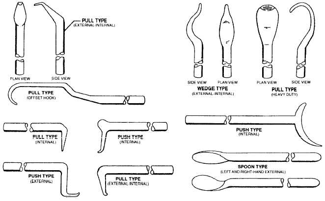Figure 2-45.Typical O-ring installation and removal tools. thinners, moisture, strong drafts, or ozone (form of oxygen formed from an electrical discharge).Damage by exposure is magnified when rubber is under tension, compression, or stress.There are several conditions to be avoided, which include the following:. Deformation as a result of improper stacking of parts and storage containers. Creasing caused by a force applied to corners and edges, and by squeezing between boxes and storage containers. Compression and flattening, as a result of storage under heavy parts. Punctures caused by staples used to attach identification. Deformation and contamination due to hanging the O-rings from nails or pegsO-rings should be kept in their original envelopes, which provide preservation, protection, identification, and cure date. Contamination is caused by piercing the sealed envelopes to store O-rings on rods, nails, or wire hanging devices. Contamination may be caused by fluids leaking from parts stored above and adjacent to O-ring surfaces. Contamination can also be caused by adhesive tapes applied directly to O-ring surfaces. A torn O-ring package should be secured with a pressure-sensitive, moistureproof tape, but the tape must not contact the O-ring surfaces. O-rings should be arranged so the older seals are used first. |