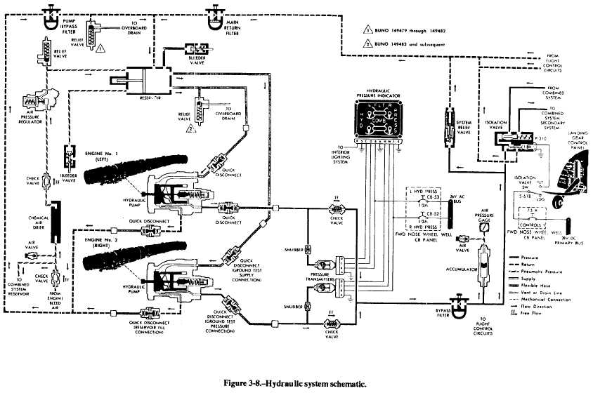 DIAGRAMS One of the more important factors in trouble-shooting a system logically is your understanding of the components and how they operate. You should study the information and associated schematics provided in the MIM. The function of each component and possible malfunctions can be used in the process of analyzing actual malfunction symptoms.A primary concern in troubleshooting an aircraft hydraulic system is to determine whether the mal-function is caused by hydraulic, electrical, or mechan-ical failure. Actuating systems are dependent on the power systems. Some of the troubles exhibited by an actuating system may be caused by difficulties in the power system. A symptom indicated by a component of the power system may be caused by leakage or malfunction of one of the actuating systems. When any part of the hydraulic system becomes inoperative, use the diagrams in conjunction with the checkout procedures provided in the aircraft MIM. Possible causes of trouble should always be eliminated systematically until the pertinent cause is found. No component should be removed or adjusted unless there is a sound reason to believe the unit is faulty.