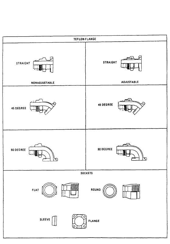 HOSE FITTINGS Hose fittings are assemblies of separate parts. These parts are the nipple, the socket, the swivel nut or flange, and the sleeve. The nipple is the part that fits the inside diameter of the hose. Nipples have three configurations for the hose-to-tube or component surface-sealing portion. They are the flared,